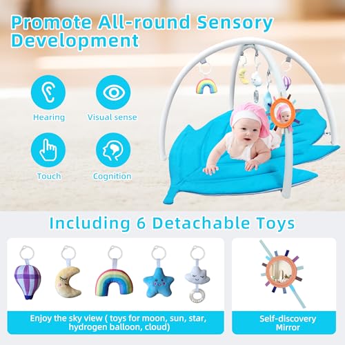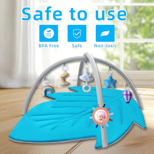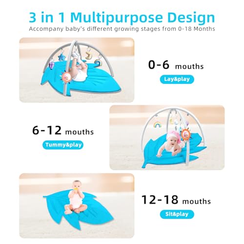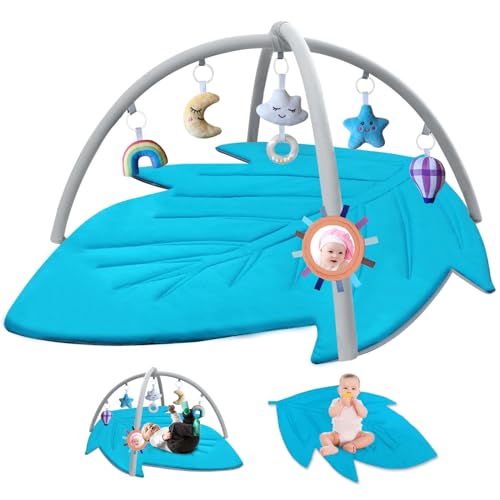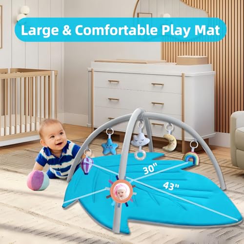 🌟Spacious, Easy-Clean & Parent-Approved– Extra-large leaf design (43”x30”) gives babies room to wiggle and grow for 0-18months baby. The baby play mat activity gym is also machine washable and wipeable, making it easy to clean after playtime