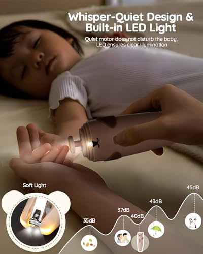 Whisper-Quiet Operation for Comfort: Experience a peaceful nail trimming session with our electric nail file. Operating at a whisper-quiet 35-45dB, it ensures minimal disturbance to baby. The low noise level is perfect for sensitive ears, making it easy to maintain hygiene without causing any upset. Keep your little ones calm and comfortable during grooming