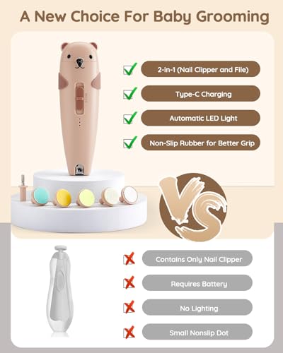 Lilian&Gema Baby Healthcare and Grooming Kit, 28-in-1 Rechargeable Nail Trimmer Electric Set, Dual Auto Light Baby Nail Care Kit, Portable Newborn Nursery Health Care Set for Infant Toddlers Boy Girl