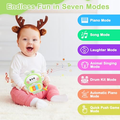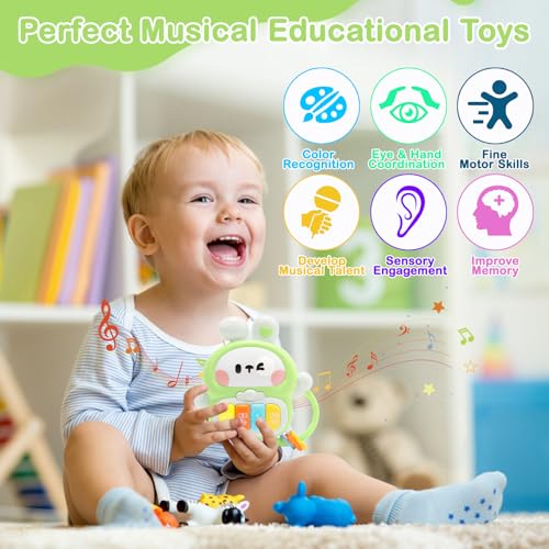 Baby Musical Toys 6-12 Months, Rabbit Piano for Baby Musical Toys for Toddlers 1-3, Busy Board with Music & Light, Birthday Toy for Infant Toddler 1 Year Old Boy Girl Gifts (Green)