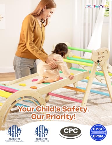 ๐ข๐ซ๐ฌ๐ญ ๐๐จ๐ง๐ฌ๐ญ๐ซ๐ฎ๐๐ญ๐ข๐จ๐ง: The Twinkoo Climbing Set for toddlers are larger and made of thicker materials, ensuring enhanced stability and durability; All wood surfaces are polished to prevent injuries, providing a safe play environment; The frame undergoes rigorous testing to support up to 200 pounds, making it a reliable choice for your child’s playtime activities