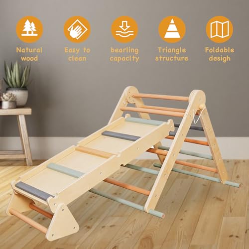 Kids Foldable Climbing Set with Ladder,Ramp,Balance Beam;Triangle Wooden Climbing Toys for Toddlers 1-3 Inside Playground,Baby Indoor Climber Jungle Gym for Montessori