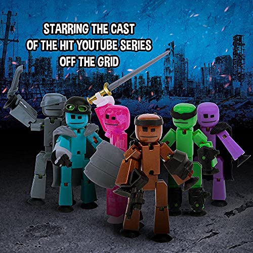 STARS OF OFF THE GRID: Includes 6 Off the Grid Stikbot action figures (Striker, Clint, Pixel, Raptus, Shift and Regalius), each with weapons and accessories, the epic cast from the Youtube hit series Off The Grid