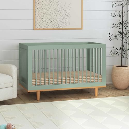 DaVinci Marley 3-in-1 Convertible Baby Crib with Wooden Toddler Bed & Daybed Conversion, Durable, GREENGUARD Gold Certified – 4 Adjustable Mattress Heights – Light Sage & Walnut Legs