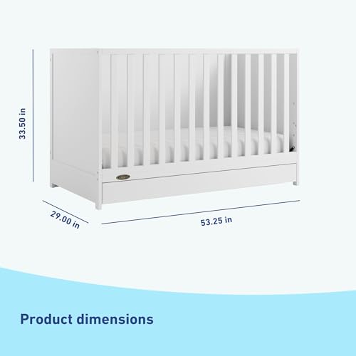 Graco Theo 3-in-1 Convertible Crib with Storage Drawer (White) – GREENGUARD Gold Certified Baby Crib Crafted from Wood, Converts to Toddler Bed, Daybed, and Full-Size Bed