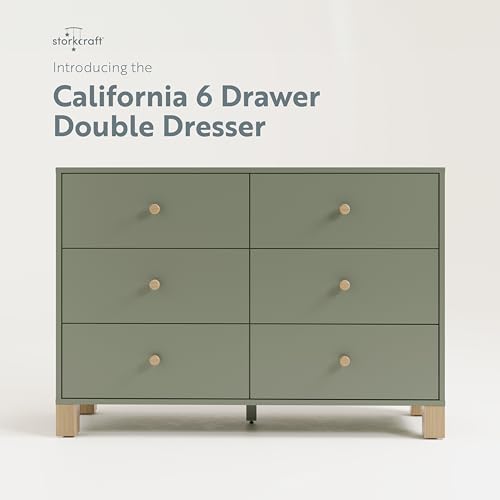 Storkcraft California 6-Drawer Double Dresser (Olive with Driftwood) – GREENGUARD Gold Certified, Interlocking Drawer System, Dresser Drawer Organizer for Kids Bedroom