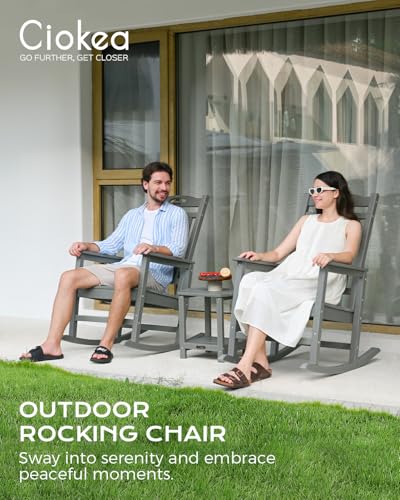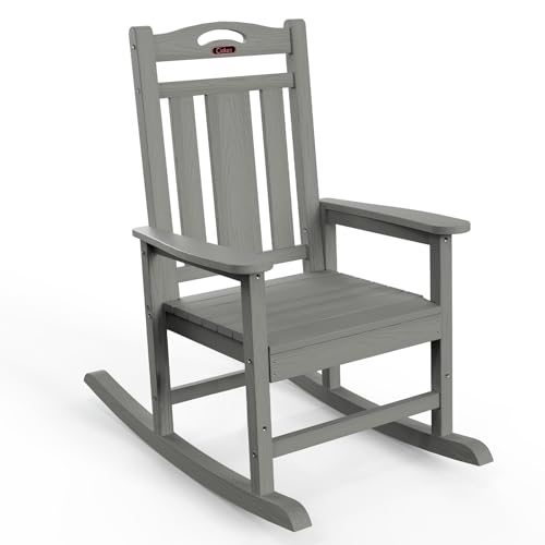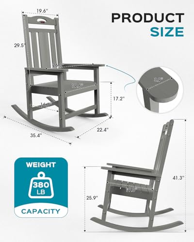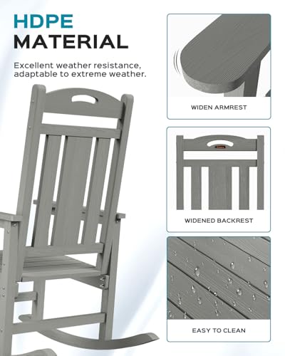 Oversized Rocking Chair Outdoor, HDPE Poly Rocking Chair, All Weather Porch Rocker for Deck Patio Balcony, 380lbs, Grey