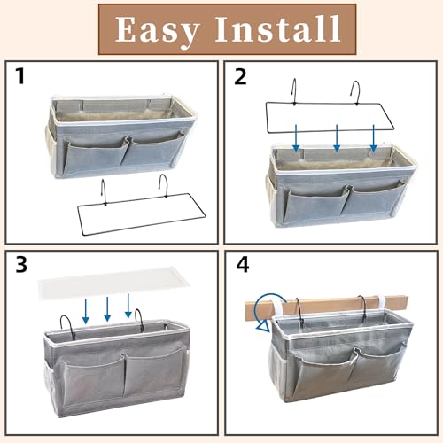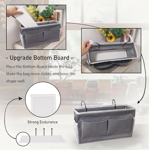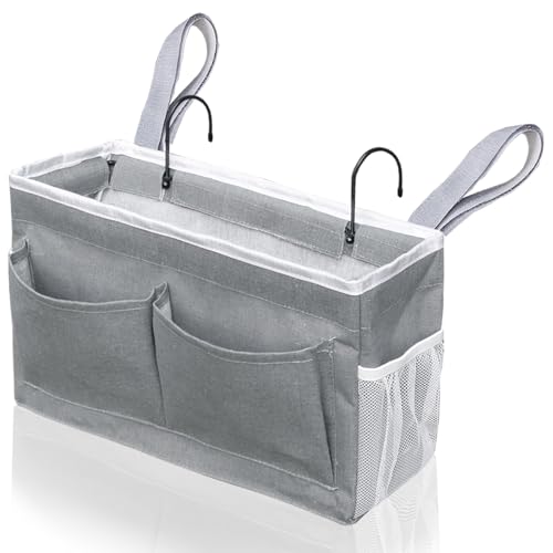 1pcs Bedside Caddy, 14.6” Large Storage Organizer, Hanging Bag Holder with Pockets for Bedroom, Loft Bed Tent, Top Bunk bed Shelf Accessories (Grey)