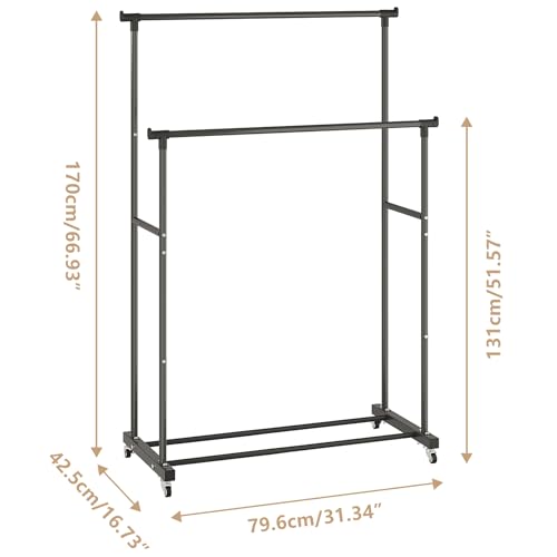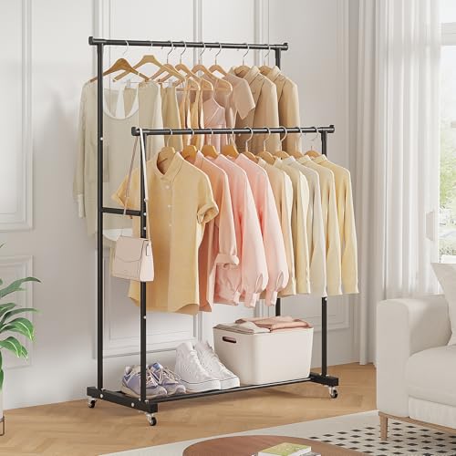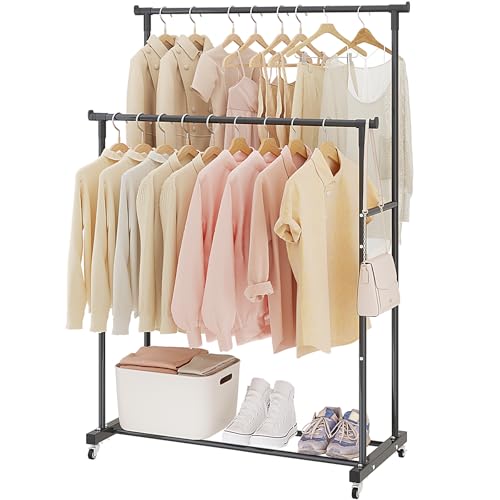 Calmootey Double Rods Clothes Garment Rack, Rolling Clothing Rack for Hanging Clothes, Coat Storage, Organizer for Bedroom, Livingroom, Apartments, Black