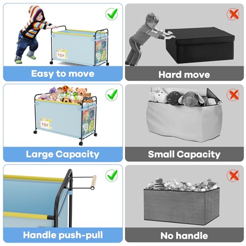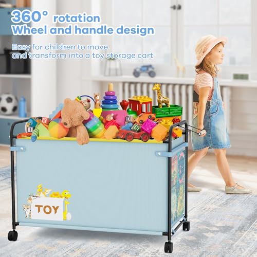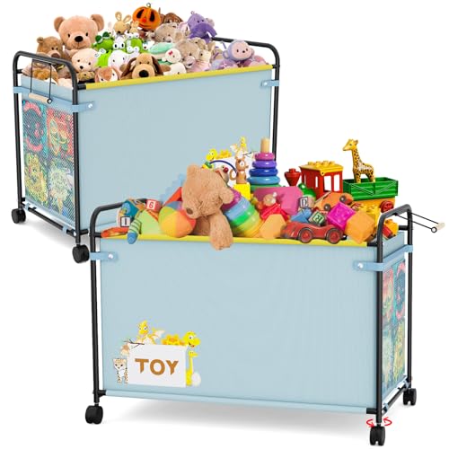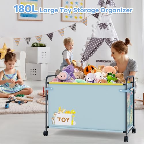 2PC Toy Box Storage, 180L Extra Large Toy Chest with 360° Wheels, Oxford Cloth Metal Toy Box for Boys, Girls, Stuffed Animals, Clothes, Bedroom, Living Room