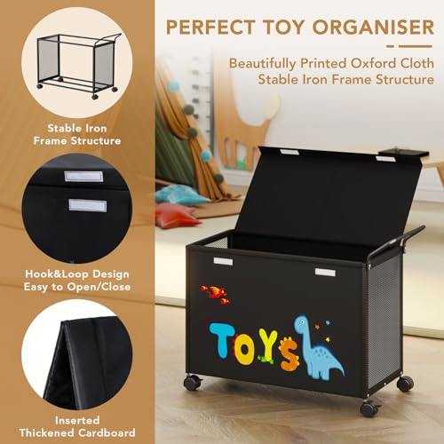 BBLIKE Toy Box for Living Room Area, Large Toy Chest for Toddlers, Extra Toy Storage Organizer on Wheels, Baby Toy Box for Girls Boys, Black