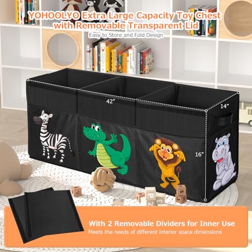 Extra Large Toy Box, Collapsible Sturdy Toy Storage Organizer with Lids, Dinosaur Storage Box for Boys Girls, 42″x16″x14″ Kids Bin Chest Baskets for Living Room, Playroom, Bedroom, Nursery, Black