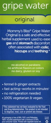 Mommy’s Bliss Gripe Water Original, Infant Gas & Colic Relief, Gentle & Safe, 2 Weeks+, 4 Fl Oz (Pack of 1)
