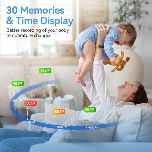 CONVENIENT & USER-FRIENDLY: Features an easy-to-read colour-coded display, easy to read even at night; 30 memory recalls; °F or ℃ swichable; Includes a storage pouch & Battery, making it easy to carry and ideal for travel or on-the-go use.
