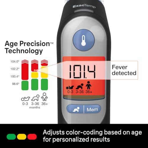 EASY TO USE – Featuring a pre-warmed tip, it can be used comfortably as a baby thermometer. Infrared technology in this infant thermometer takes temperatures instantly. The ExactTemp system uses a light and beep to confirm proper positioning in the ear.