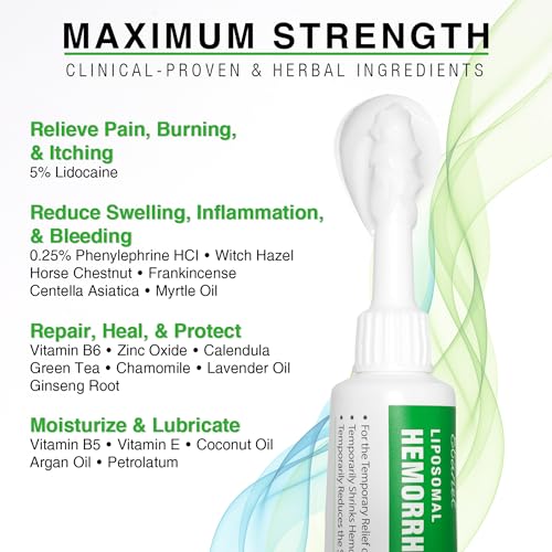 FSA HSA Eligible OTC Hemorrhoid Treatment – this clinically proven hemorrhoid cream maximum strength, featuring active ingredients of Lidocaine 5% and Phenylephrine HCl 0.25%, effectively numbs local and anorectal pain, anal itching, burning, soreness, and discomfort