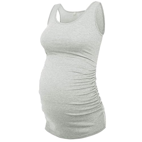 AMPOSH Women’s Maternity Tank Top 3 Pack Ruched Side Sleeveless Pregnancy Basic Shirt