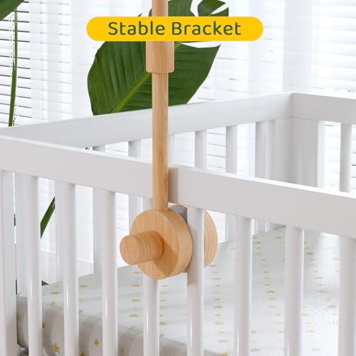 【Premium Quality】This crib mobile arm is made from natural beech woods. Smooth mobile arm for crib is specially used for protecting your baby’s delicate skin. Our baby mobile hanger with silicone pads to protect cribs and increase friction, which is stand out from nursery decors, provides a sturdy and secure hold.