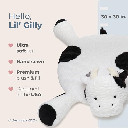 Bearington Collection Lil’ Gilly (30 Inch) Cow Tummy Time Mat – Cow Baby Blanket – Pillow for Baby