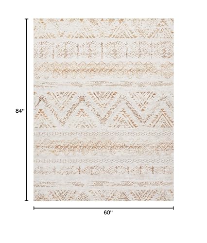 Area Rug Living Room Carpet: 5×7 Large Moroccan Soft Fluffy Geometric Washable Bedroom Rugs Dining Room Home Office Nursery Low Pile Decor Under Kitchen Table Light Brown/Ivory